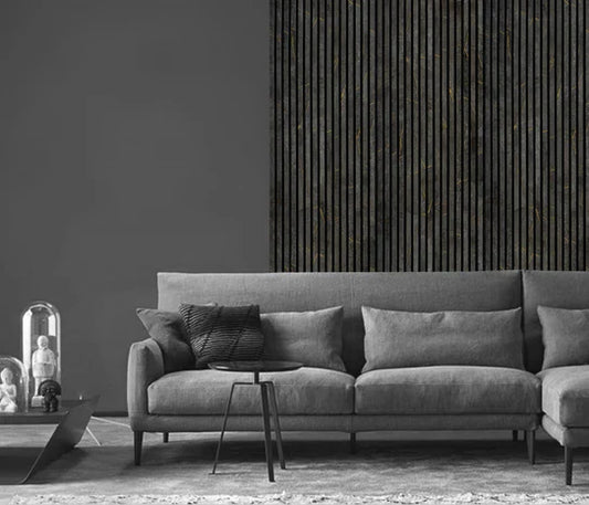 240cm x 60cm Acoustic Slatted Wall Panel Black & Gold Marble