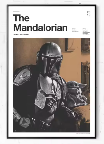 The Mandalorian (2019) – Featuring Mando and Grogu in a warm, minimalist colour palette—perfect for Star Wars fans old and new.