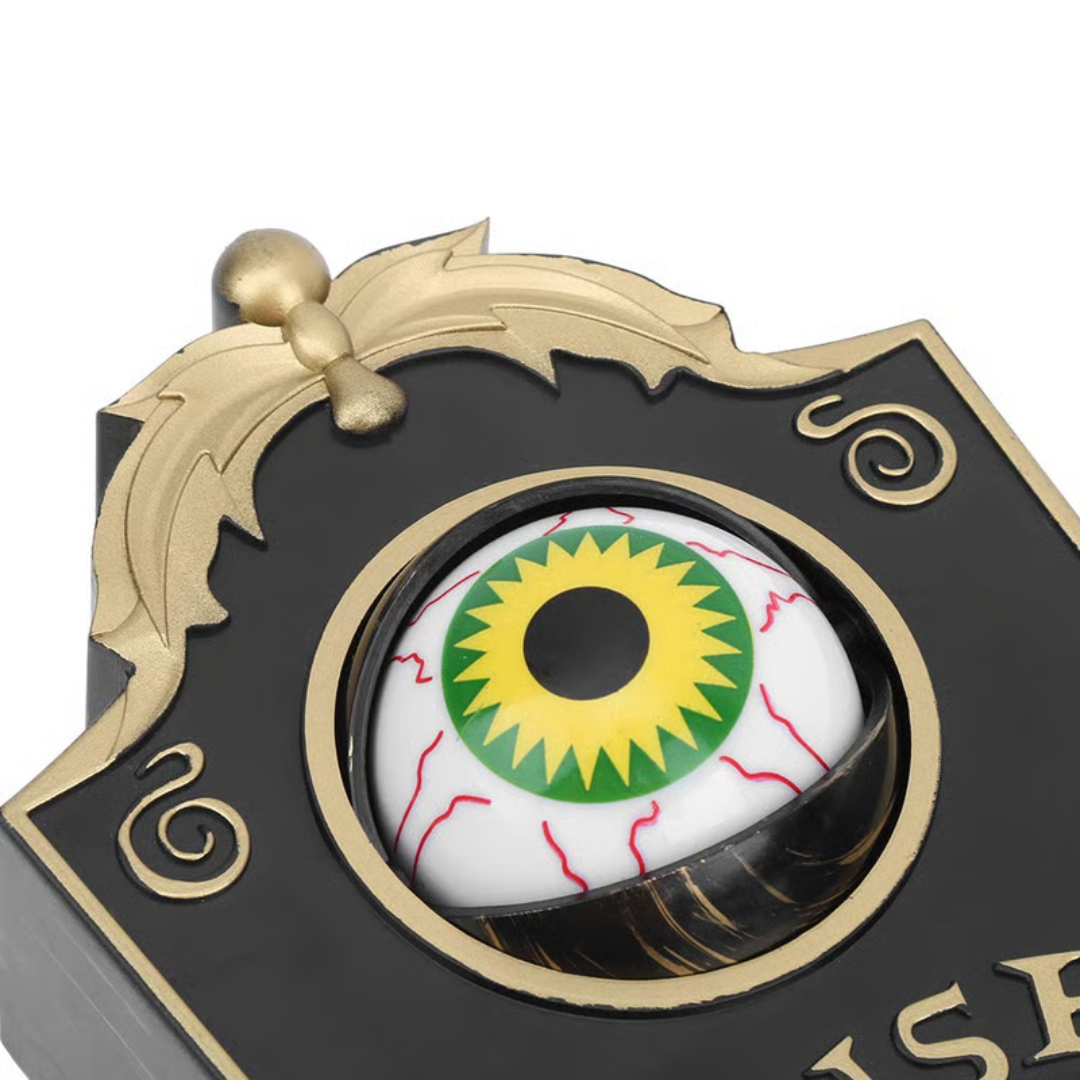 Imagine this: a child approaches your door on Halloween night, excited for candy. They see a closed, ancient eye embedded in gothic brass. Curious, they press the button...